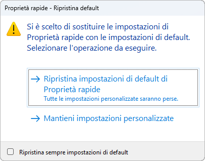 - Fare clic su Ripristina le impostazioni di default di Proprietà rapide.
