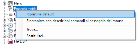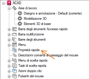 - Nella scheda Personalizza, nel riquadro Personalizzazioni in <nome file>, fare clic con il pulsante destro del mouse su Proprietà rapide.