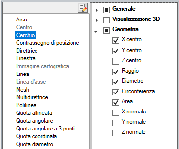 Se un tipo di oggetto è selezionato, le relative proprietà vengono visualizzate nella tavolozza Proprietà rapide quando viene selezionato un oggetto dello stesso tipo e quando QPMODE è impostata su 2 e PICKFIRST è attivata. Eliminare il segno di spunta accanto ad un tipo di oggetto per rimuovere il tipo di oggetto selezionato dalla tavolozza Proprietà rapide.