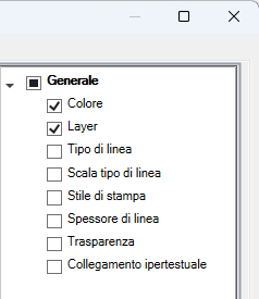 - Nel riquadro Proprietà, fare clic sulle caselle di controllo accanto alle proprietà generali che si desidera visualizzare nella tavolozza Proprietà rapide per tutti i tipi di oggetto.