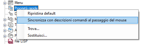 Sincronizzazione delle proprietà rapide con le descrizioni comandi al passaggio del mouse