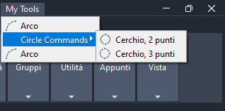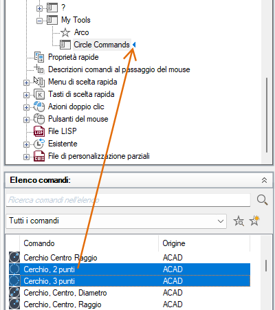 Nel riquadro Elenco comandi, trascinare il comando da aggiungere al sottomenu della barra degli strumenti nel riquadro Personalizzazioni in <nome file>.