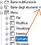 - Trascinare il menu da cui si desidera creare una barra degli strumenti e rilasciarlo sul nodo Barre degli strumenti.