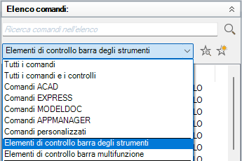 Nel riquadro Elenco comandi vengono visualizzati solo gli elementi di controllo della barra degli strumenti.