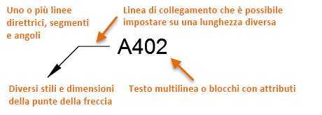 Nota: Il comando MULTIDIR fornisce le opzioni per cambiare l'ordine di input del comando, se si desidera specificare prima la punta della freccia, la linea di collegamento o il contenuto.