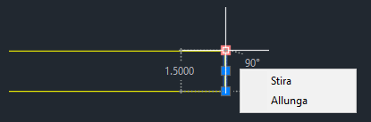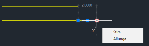 Selezionare il segmento di linea breve come mostrato di seguito e selezionare il grip all'estrema destra.