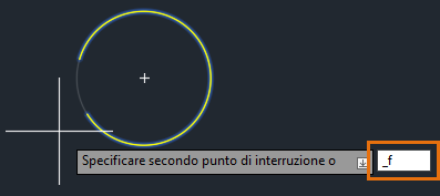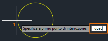 Utilizzare lo snap ad oggetto QUADrante e specificare il primo punto di interruzione come quadrante del cerchio.