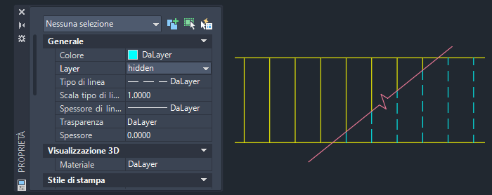 Si supponga di voler posizionare le linee verticali a destra della linea di interruzione su un layer diverso rispetto alle linee a sinistra.