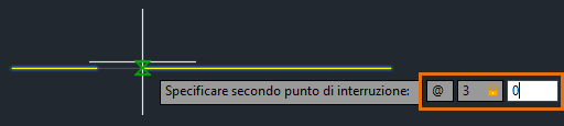 Le coordinate relative possono essere utilizzate per specificare il secondo punto in cui interrompere l'oggetto. L'esempio seguente creerà uno spazio nelle tre unità della linea a destra.