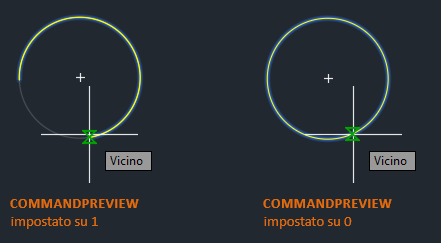 Verificare che la variabile di sistema COMMANDPREVIEW sia impostata su 1. Quando l'anteprima del comando è attivata, viene visualizzata un'anteprima dei risultati mentre si utilizza un comando.