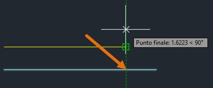 La linea verrà spezzata in corrispondenza dell'intersezione tra la linea di puntamento con snap ad oggetto e la linea inferiore. Per ulteriori informazioni sul puntamento con snap ad oggetto, vedere Puntamento con snap ad oggetto nel manuale L’’ABC.