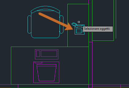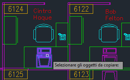 Si bloccherà temporaneamente il layer per i pannelli delle postazioni e si congelerà il layer di arredo in modo da poter cancellare gli oggetti desiderati, quindi annullare le azioni dei layer.