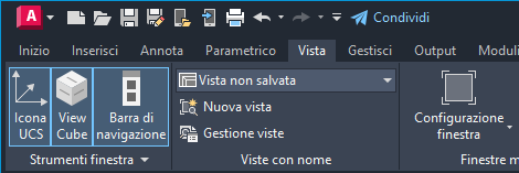 Innanzitutto, se l'icona UCS non è visualizzata, attivarla facendo clic sulla scheda Vista e attivare o disattivare il controllo dell'icona UCS.