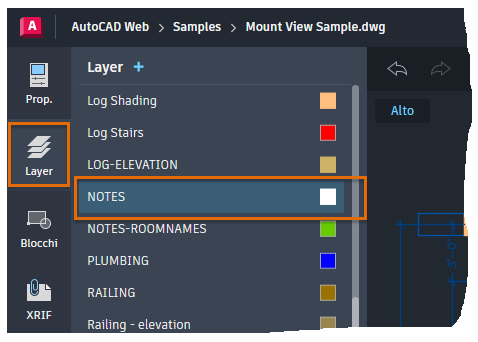 Apertura e utilizzo dei disegni nell'app AutoCAD per il Web