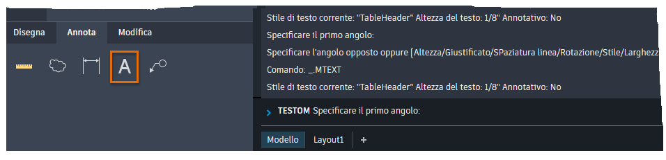 Fare clic su uno strumento sulla barra multifunzione e seguire i messaggi di richiesta che vengono visualizzati nella finestra Riga di comando.