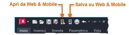 Salvare un file in AutoCAD Web & Mobile facendo clic su Salva in Web & Mobile (comando SALVASUWEBMOBILE)