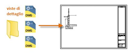 - Qualsiasi file di disegno. Ad esempio, è possibile creare un disegno di una vista di dettaglio standard. È quindi possibile utilizzare uno strumento di inserimento del blocco per inserire questo disegno come blocco nel disegno corrente. In questo esempio, la cartella delle viste di dettaglio è in genere definita come cartella della libreria di blocchi.