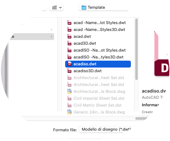 Tutte queste impostazioni possono essere salvate in un file modello di disegno. Fare clic su Nuovo per scegliere tra diversi file modello di disegno: