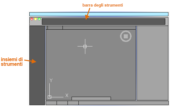 AutoCAD include un insieme di strumenti a sinistra dell'area di disegno. Dalla scheda Disegno è possibile accedere a quasi tutti i comandi presentati in questa guida. Inoltre, la barra degli strumenti sopra l'area di disegno include i comandi utilizzati con maggiore frequenza, ad esempio Nuovo, Apri, Salva, Stampa, Annulla e così via.