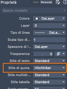 Il nome dello stile di quota corrente, in questo caso Hitchhiker, viene visualizzato nell'elenco a discesa di Analisi proprietà quando non è selezionato alcun oggetto.