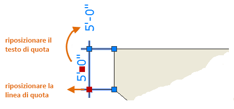 In questo esempio, si seleziona la quota per visualizzarne i grip. Quindi, fare clic sul grip del testo di quota e trascinarlo in una nuova posizione oppure fare clic su uno dei grip all'estremità della linea di quota e trascinare la linea.