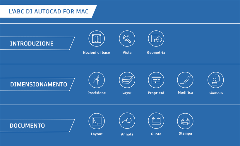 Se è la prima volta che si accede ad AutoCAD for Mac o AutoCAD LT for Mac, questa guida presenta i comandi essenziali necessari per creare disegni 2D. È anche un ottimo modo per rinfrescare la memoria se è stata appena completata la formazione iniziale o se si utilizza AutoCAD for Mac solo occasionalmente.