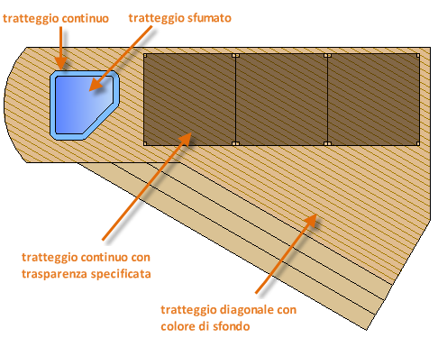 Di seguito sono riportati alcuni esempi di utilizzo dei tratteggi con riempimento solido: