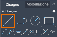 La linea rappresenta l'oggetto più semplice e comune nei disegni di AutoCAD. Per disegnare una linea, fare clic sullo strumento Linea.