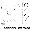 Seleziona gli oggetti che intersecano o si trovano all'interno di un'area definita da due punti. La selezione Interseca viene visualizzata con linee tratteggiate oppure evidenziata in altro modo per differenziarla dalla selezione Finestra.