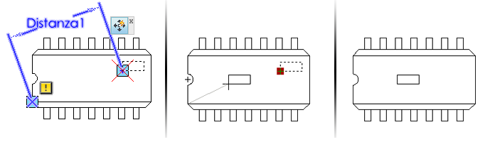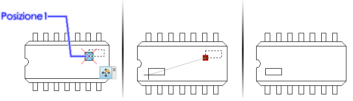 Un'azione di spostamento associata ad un parametro punto consente di spostare tutti gli oggetti di un gruppo di selezione in qualsiasi direzione. Il parametro punto è la posizione del grip che consente di eseguire l'azione di spostamento nel riferimento di blocco.