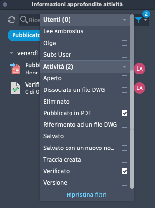 Nota: È possibile selezionare più opzioni dagli filtri di utente e attività.