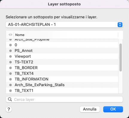 Visualizza i nomi di tutti i layer disponibili nel sottoposto selezionato.