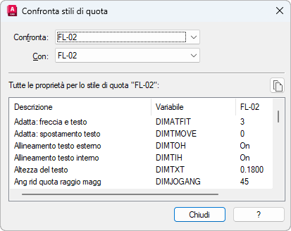 Consente di confrontare le proprietà di due stili di quota o di visualizzare tutte le proprietà di uno stile.