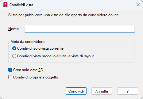 Pubblica una rappresentazione dello spazio corrente o l'intero disegno per la visualizzazione e la condivisione in linea. Ciò semplifica la comunicazione e la collaborazione con le parti interessate senza condividere i file DWG di origine.