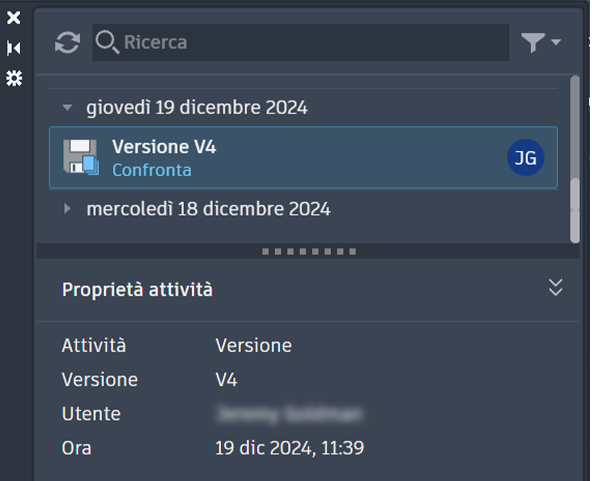 Nota: Attualmente, in AutoCAD LT viene visualizzata solo l'attività Versione nella tavolozza Informazioni approfondite attività.