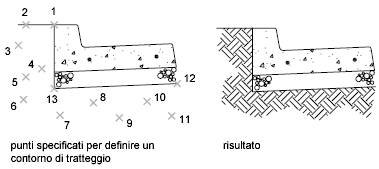 Nota: È inoltre possibile cancellare gli oggetti del contorno di un tratteggio esistente oppure tagliare un tratteggio esistente per gli oggetti che intersecano gli spigoli del tratteggio.