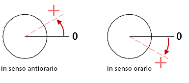 Controlla se gli angoli positivi vengono misurati in senso orario o antiorario.