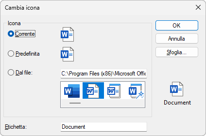 Consente di specificare una didascalia per l'icona. Viene visualizzato il tipo di file, a meno che non sia diversamente specificato.