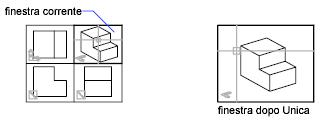 Riporta la visualizzazione del disegno in un'unica finestra, utilizzando la vista della finestra corrente.