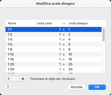 Controlla l'elenco delle scale disponibili per le finestre di layout, i layout di pagina e la stampa.