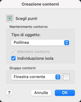 Definisce il tipo di oggetto contorno che verrà creato dall'area chiusa e la modalità di individuazione delle aree chiuse.