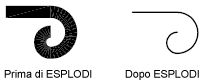 Esplode generando segmenti di linea. Qualsiasi tipo di linea assegnato alla polilinea 3D viene applicato ad ogni segmento di linea risultante.