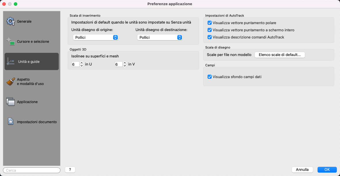 Imposta le preferenze relative ai campi.