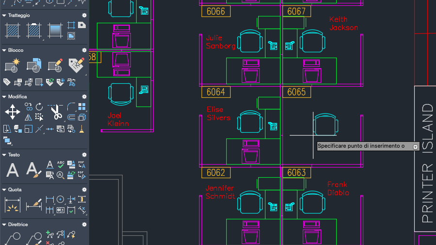 La nuova funzionalità Blocchi intelligenti può offrire suggerimenti per il posizionamento in base al punto in cui il blocco è stato posizionato in precedenza nel disegno.