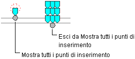 | Un altro punto del dispositivo o del quadro | Fare clic sul grip Mostra tutti i punti di inserimento, quindi selezionare il grip. |