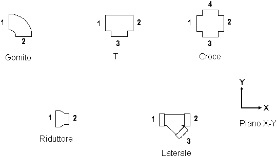 Il dominio Tubature include raccordi con connettori femmina. I tipi di connessione con connettori femmina includono rocchetto, campana e giunto meccanico. Il connettore femmina su un gomito o un T è progettato come connettore 2. Il connettore femmina su raccordi non simmetrici, quali croci, è designato come connettori 2 e 4. Quando si aggiunge un nuovo connettore per tubi ad un segmento di tubo o parte multivista, il software assegna parametri di lunghezza innesto connettore e angolo di deflessione.