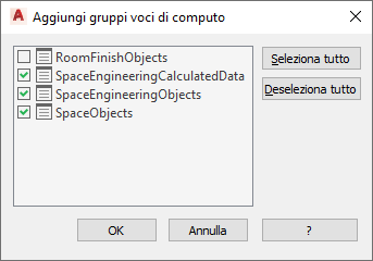 La classificazione configurata per lo stile di vano specificato è visualizzata in questo elenco. È possibile sostituirla facendo clic sul tipo di stanza e specificandone un altro nella finestra di dialogo Seleziona classificazione. Se il valore corrente è *Non specificato*, specificare un tipo di stanza.