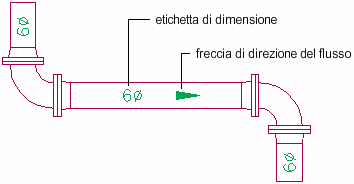 | Per quantità | Specificare il numero totale di etichette o frecce di direzione del flusso da visualizzare su ogni segmento del tubo. Osservare che il numero specificato di etichette o frecce di direzione del flusso viene aggiunto automaticamente ad ogni segmento retto. |