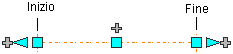 I grip Inizio e Fine consentono di modificare la posizione XY del punto iniziale o finale del segmento. Ciò è utile per il disegno iniziale di tratti, poiché in seguito risulta facile connettere un segmento ad un tratto esistente.