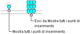 | Un altro punto del dispositivo o del quadro | Fare clic sul grip Mostra tutti i punti di inserimento, quindi selezionare il grip. |